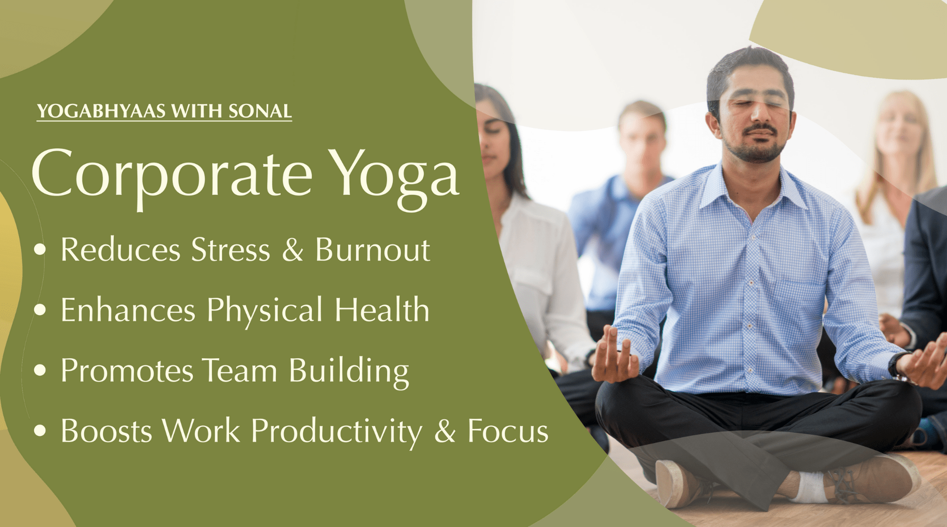 What is corporate yoga, and how does it work?Corporate yoga involves offering yoga sessions at the workplace or online, designed specifically for employees. These sessions can include stretching, breathing exercises, and relaxation techniques to reduce stress and improve focus and productivity.